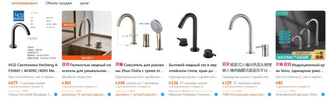 Мы видим разные по дизайну модели. Все продаются в России по доступным ценам и все - от российских производителей. В чем подвох? Не все смесители сделаны российскими производителями. На рынке много “близнецов” с разными товарными знаками. Еще больше их на китайском сайте Taobao - гигантском маркетплейсе для внутреннего рынка. Именно там берет своё начало поток псевдо - “нашей” сантехники - стоит только с помощью гравировки нанести свою торговую марку. Именно такие случаи мы хотим выявить с помощью простой проверки “на Taobao”.
