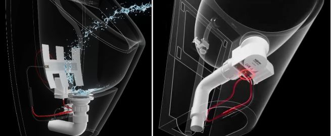 - KG637 Kit — универсальное решение для керамических и металлических чаш: сенсор интегрирован непосредственно в сифон (на рисунке справа).