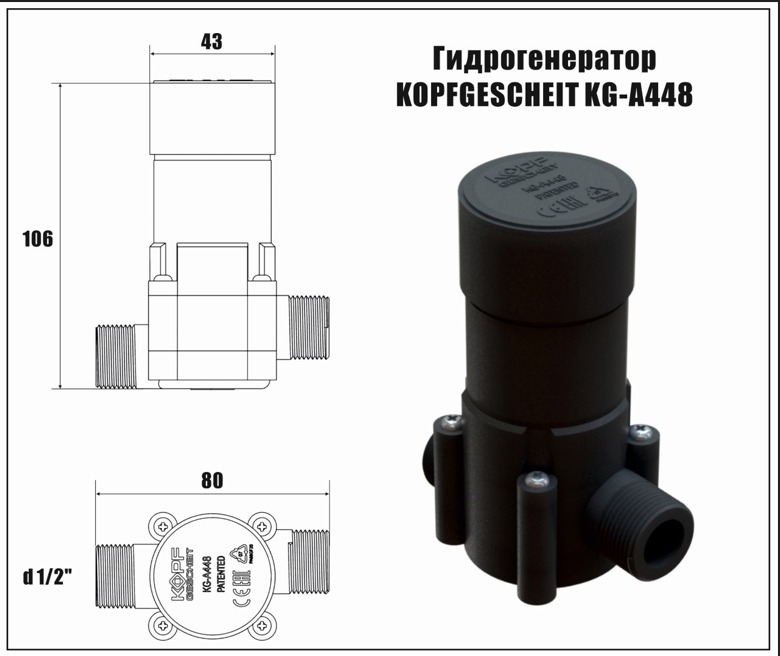 Ключевой особенностью устройства является его высочайшая эффективность: 0, 25 литра протекающей воды достаточно для выработки примерно 5 Ватт электроэнергии. За несколько секунд ГЕНЕРАТОР обеспечивает автоматику энергией на целый день работы.