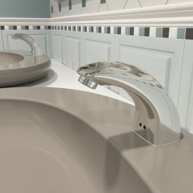 - Электромагнитный клапан открывается и подает воду в излив смесителя после того, как рука появится в поле зрения сенсора.