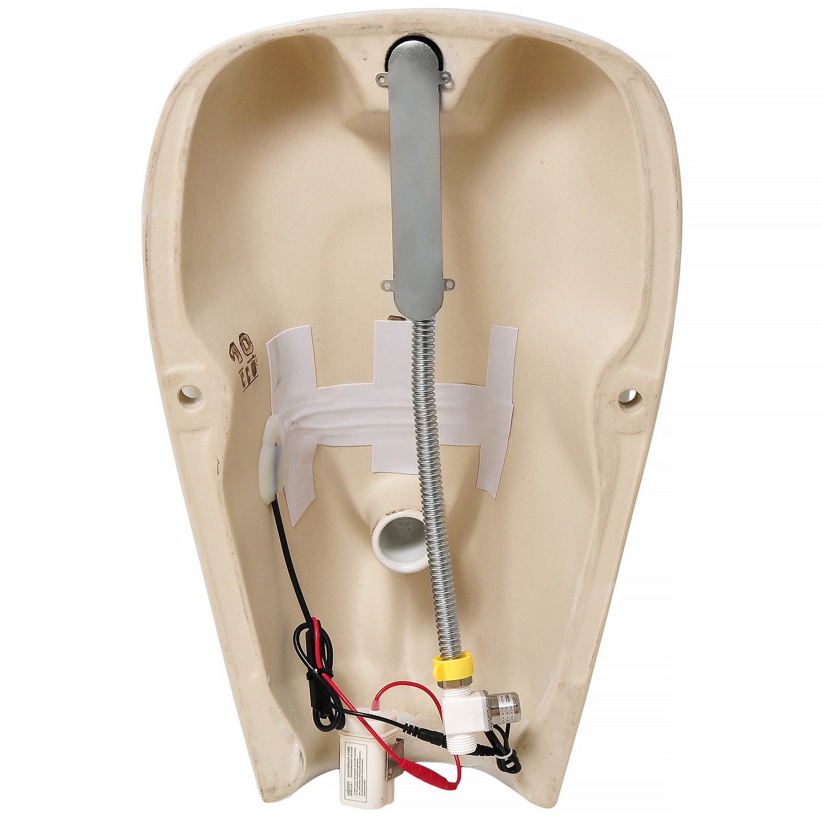 - Жидкость ("грязная" жидкость с солями) попадает на чашу писсуара. Сенсор фиксирует эту жидкость и сразу делает предварительный слив воды.