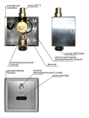 - Сенсор с лицевой панелью и кнопкой принудительного ручного смыва - 1 шт.