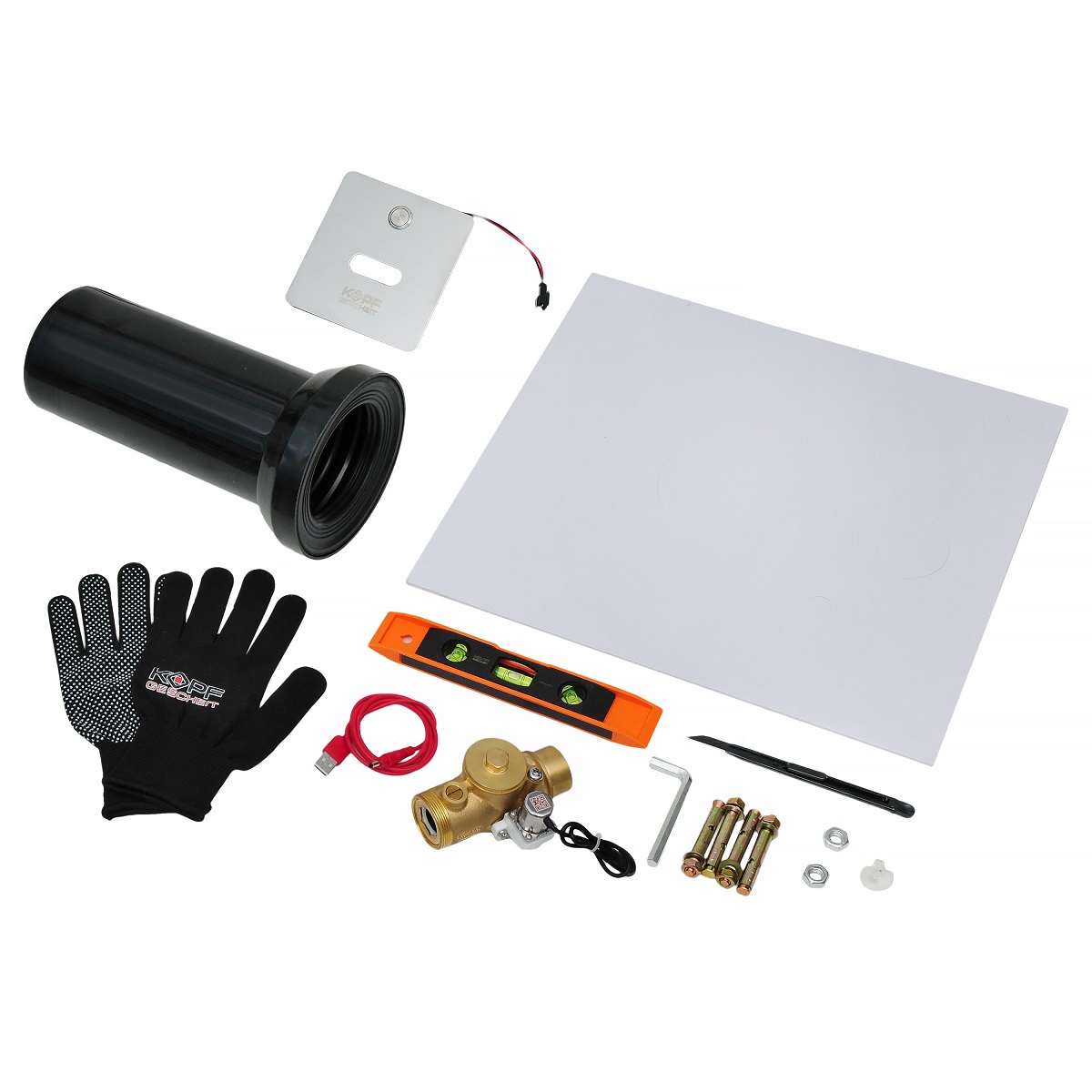 Автоматическая напольная инсталляция Kopfgescheit KR7433 Kit - современное и удобное решение для безбачковых унитазов с автоматическим сенсорным смывом. Инсталляция обеспечивает надежную фиксацию и совместима со всеми типами подвесных безбачковых унитазов.